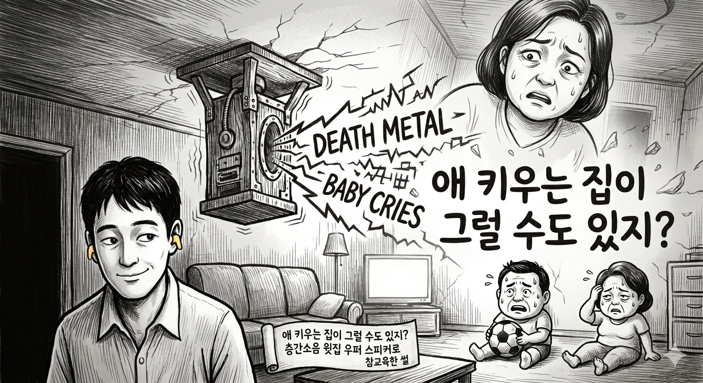 나는 여기서 지면 평생 고통받겠다 싶어서 바로 인터넷으로 '층간소음 전용 우퍼 스피커' 주문했다. 천장에 딱 붙여서 소리 위로 쏴주는 골전도 스피커인데, 이게 진짜 물건이더라고. 나는 걔네가 절대 못 참을 만한 '데스메탈'이랑 '드릴 소리', 그리고 '아기 우는 소리' 믹스된 고주파 음원을 준비했지.