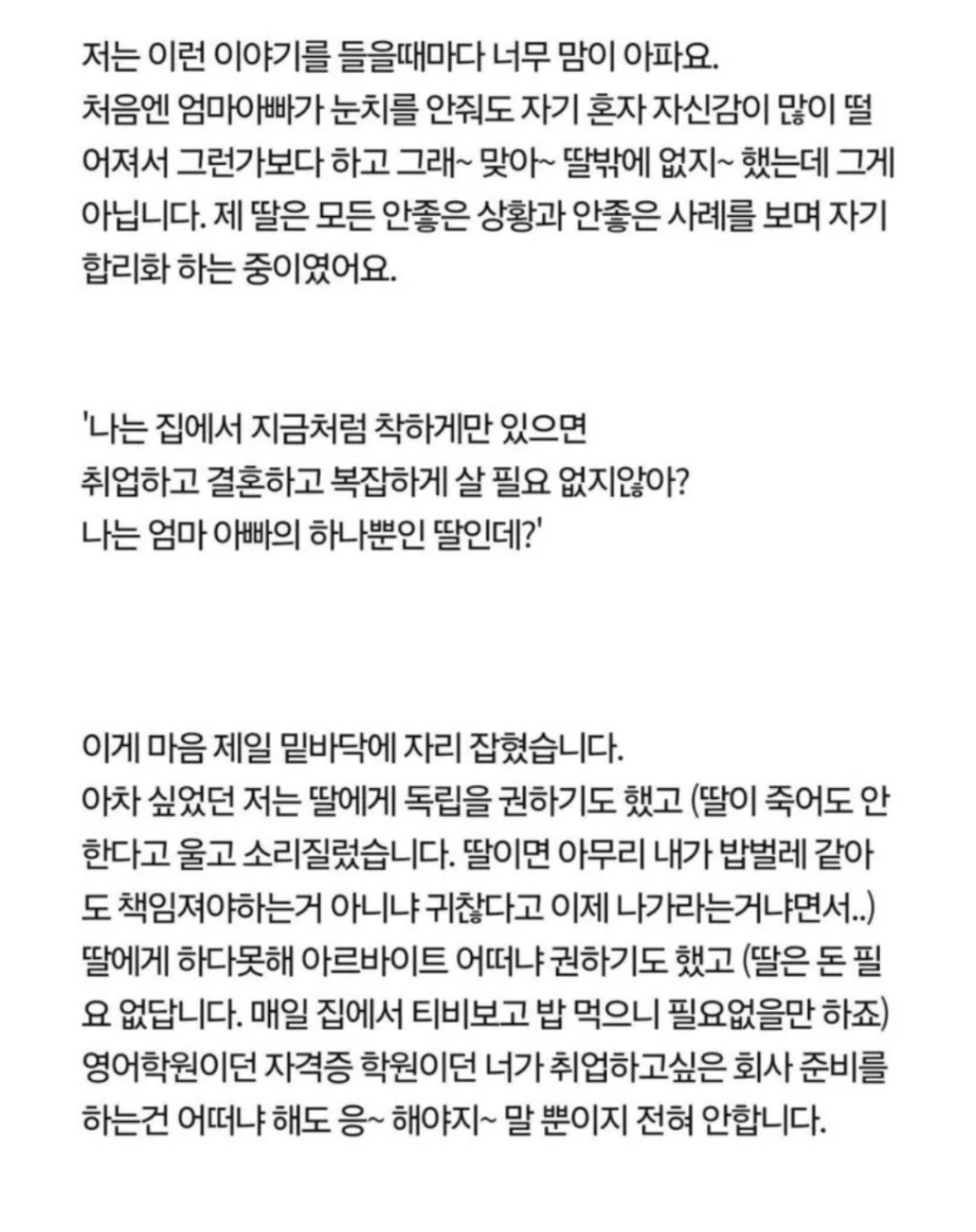 취업 안하는 딸 때문에 죽을 맛이라는 엄마 ㄷㄷ
